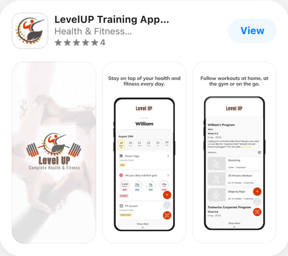 The LevelUp Training app keeps your plan simple and your progress visible — workouts, tracking, habit support, and direct messaging, all in one place.